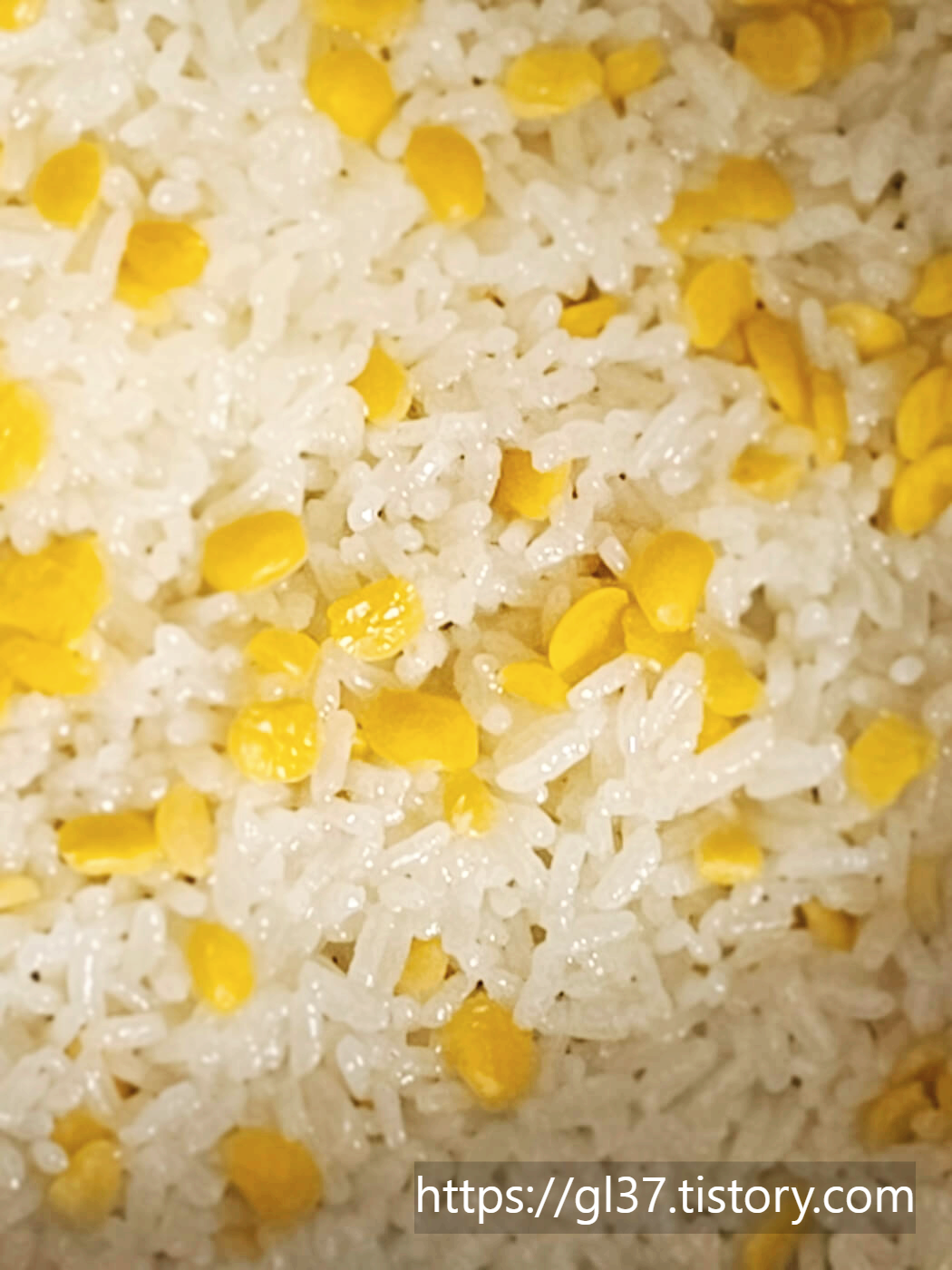 불려서 삶은 루핀콩을 쌀과 함께 넣어 밥을 지으면